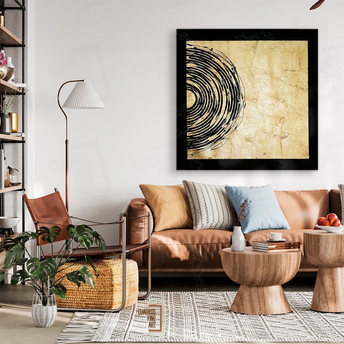 Permita que su espacio se inunde con la magia y el misterio de Eclipse Dorado II. Esta obra de arte abstracta, en formato cuadrado, captura la esencia de un instante cósmico. La luz se encuentra con la sombra en una danza sublime. Sus tonos dorados, profundos y envolventes, crean una atmósfera de sofisticación y calidez inigualable. Es un cuadro abstracto moderno que no solo decora, sino que también inspira y transforma. Cada detalle de Eclipse Dorado II ha sido cuidadosamente curado. Pensamos en ese cliente colombiano que valora la estética y busca piezas con alma. Imagínelo como el punto focal de su sala o el toque de distinción en su estudio. Esta pieza es arte puro, concebida para resonar con su buen gusto y su visión.