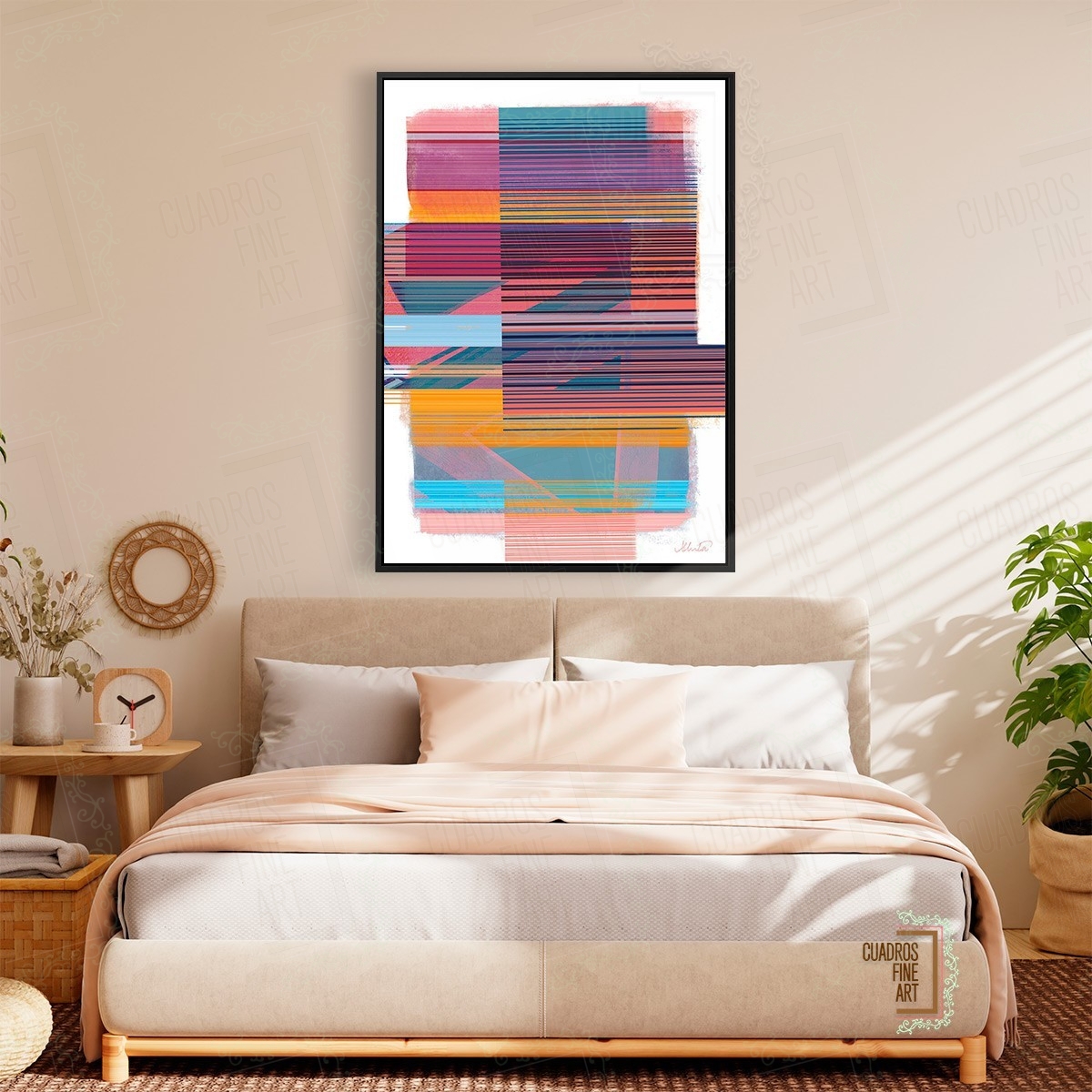 Imagine cómo "Enlace Temporal" revitaliza su sala. Aporta un toque de sofisticación inigualable. Es perfecto para el estudio, el comedor o la oficina. Su estética abstracta crea una atmósfera serena y estimulante. Permite que la energía fluya libremente por su hogar. Cada trazo invita a la contemplación. Este cuadro realza cualquier rincón de su vivienda colombiana. Añade carácter y un estilo incomparable. Es una pieza que habla por sí misma. Su presencia eleva el diseño interior.