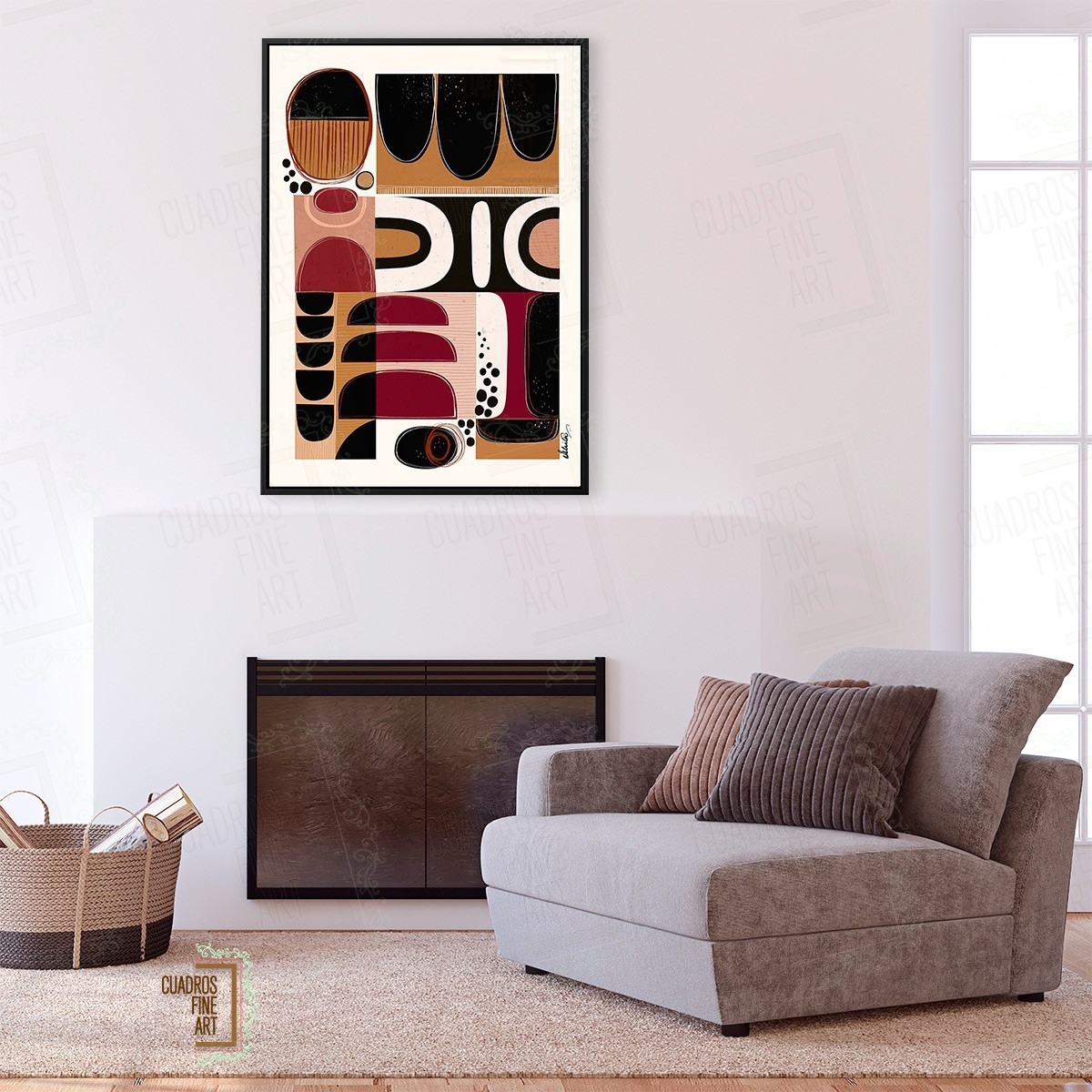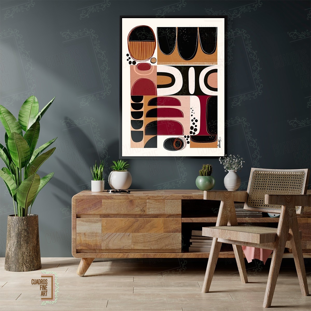 Sumérjase en la profundidad y el misterio de Filático - Tapicería Tribal, una obra maestra que redefine los cuadros abstractos. Esta pieza de arte contemporáneo es una invitación a explorar texturas y formas inspiradas en legados ancestrales. Visualice patrones intrincados y colores terrosos que evocan la riqueza de nuestras raíces. Es un diálogo entre lo primitivo y lo moderno, plasmado con una visión artística única. Cada detalle de Filático - Tapicería Tribal cuenta una historia. Sentirá la conexión con culturas milenarias, fusionadas en un diseño vanguardista.