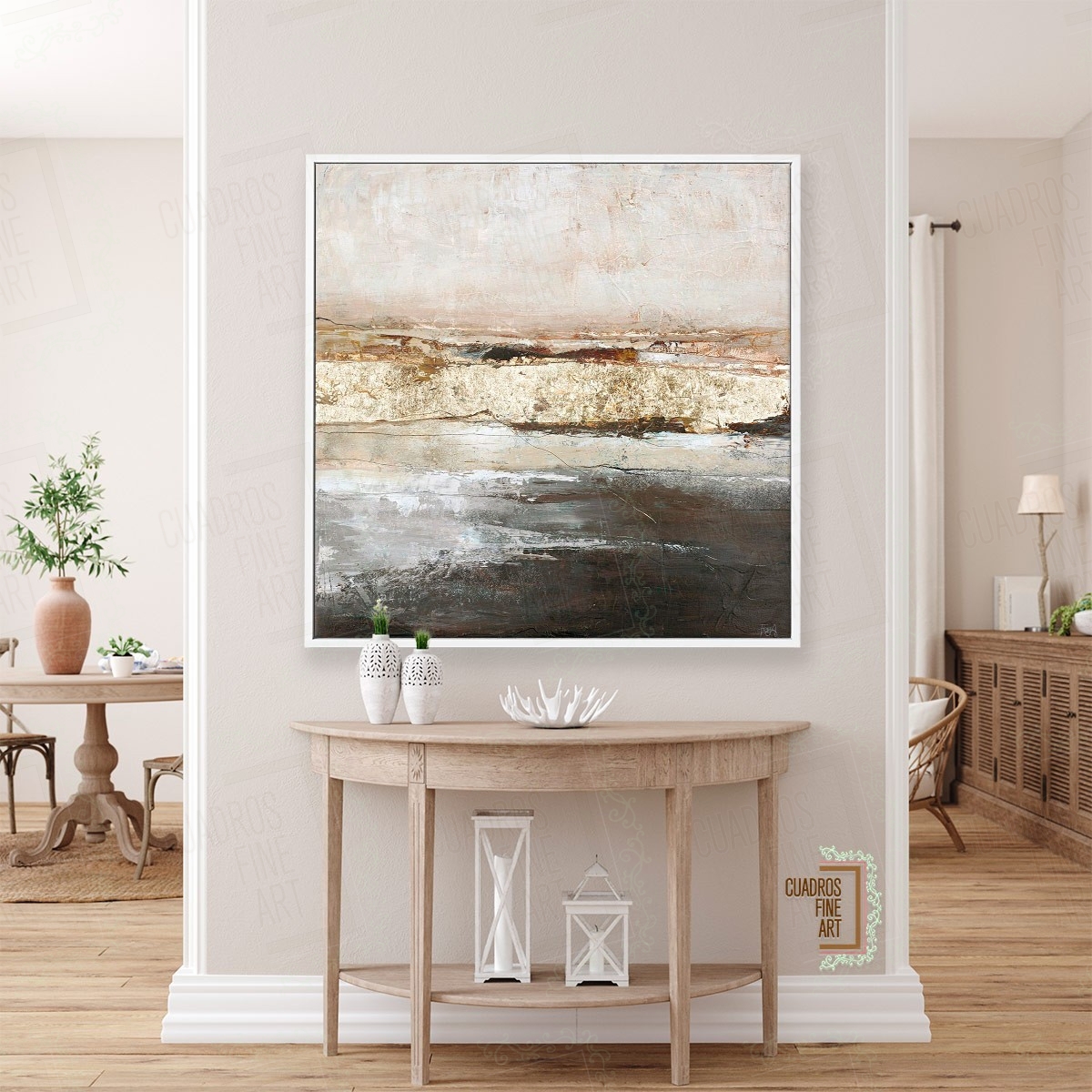 Imagine la transformación que esta obra trae a su sala. Visualice Oro de bajo límite en su oficina. Aporta una elegancia sobria, pero impactante. Su energía sutil eleva cualquier habitación. Cree un ambiente de vanguardia en su hogar. Es perfecto para espacios modernos. También complementa decoraciones más clásicas. Esta pieza redefine la armonía visual. Convierta su pared en un punto focal. Permita que el arte hable por usted. Su espacio merece esta distinción.