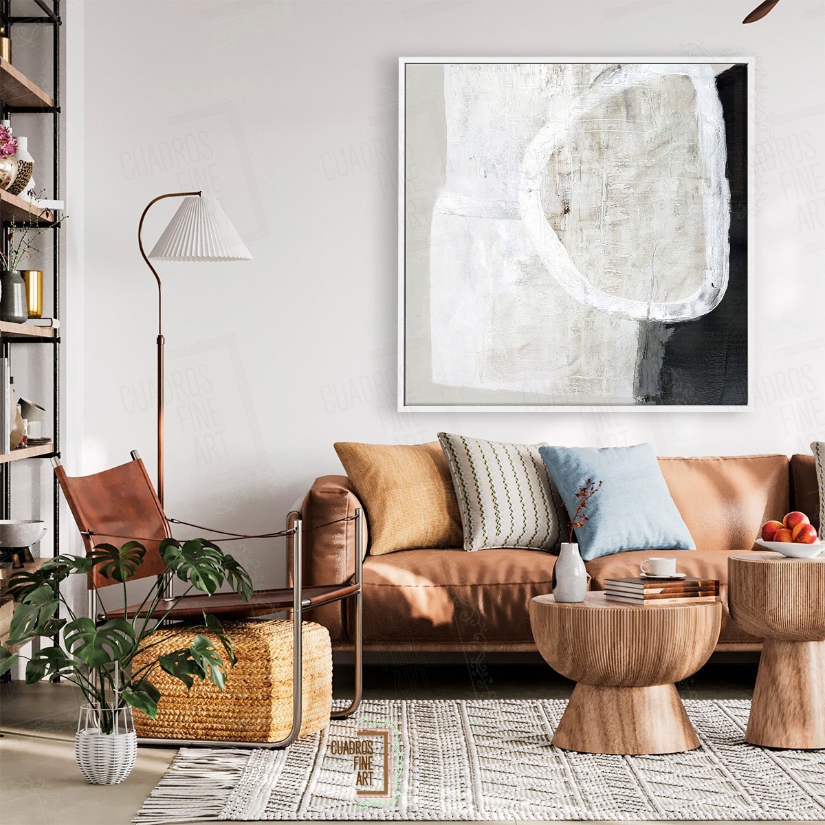 Imagínese un oasis de serenidad en su hogar. La obra Piedra blanca, un majestuoso cuadro abstracto, le transporta a ese lugar. Su formato cuadrado perfecto se adapta con elegancia a cualquier rincón. Esta pieza de arte abstracto se convierte en el centro de todas las miradas. Es una invitación a la calma visual, un respiro en su día a día. Descubra cómo un toque de arte puede transformar su entorno.