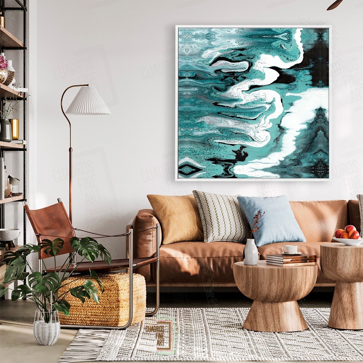 Sumérjase en la profundidad de Tierra infundida, una obra maestra de arte abstracto. Este cuadro captura la esencia de paisajes oníricos. Presenta una paleta de colores terrosos y vibrantes. Su formato cuadrado lo hace versátil. Se integra perfectamente en cualquier pared. Es una pieza de arte contemporáneo que transformará su hogar. Refleja la calidez y riqueza de nuestra tierra colombiana. No es un simple adorno. Es una ventana a la inspiración. Cada detalle invita a la contemplación.