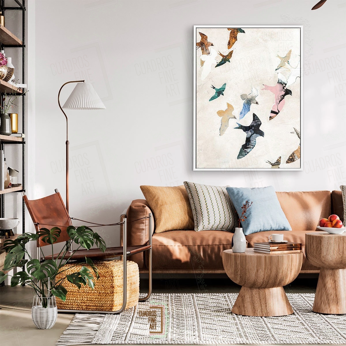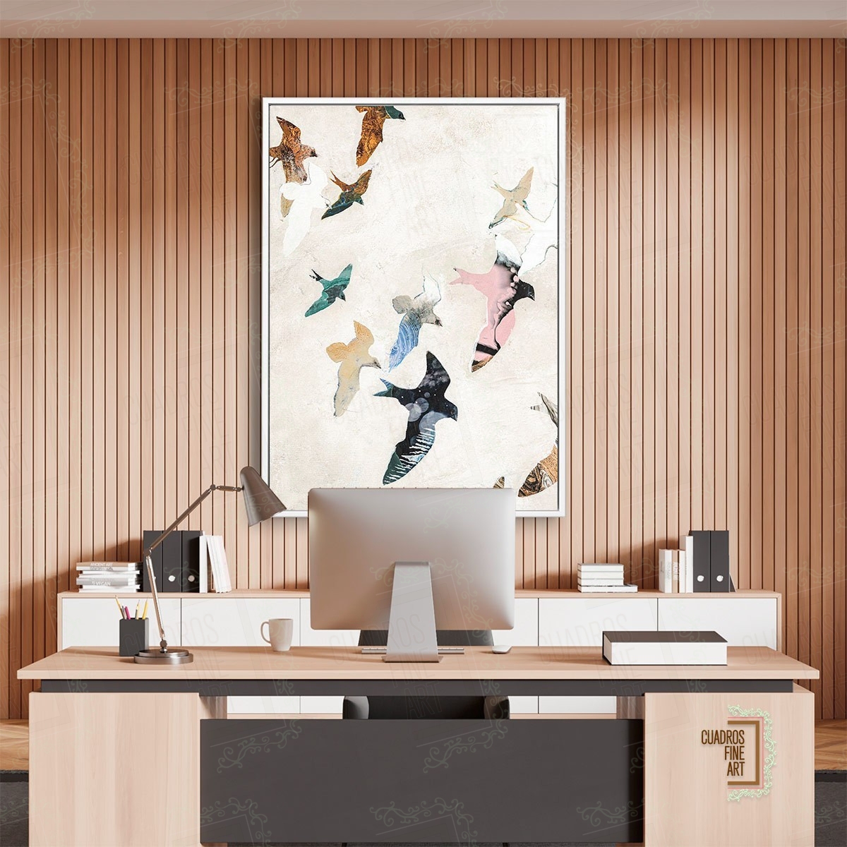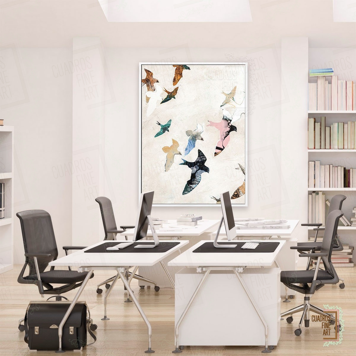 Imagine “Aves Abstractas 2” en su sala principal. Visualice cómo sus colores y formas transforman un rincón monótono. Esta obra no solo decora; inspira. Aporta una sensación de calma y dinamismo a la vez. Es ideal para su oficina, brindando un respiro visual en jornadas largas. También embellece cualquier habitación. Nuestros cuadros para decorar elevan cada ambiente. Crean una atmósfera única. Realzan el diseño de interiores de su espacio.