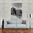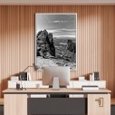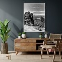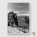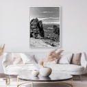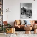 Imagine la majestuosidad silente de la naturaleza. Visualice la fuerza serena de un paisaje ancestral. "Tierras del Cañón VII" captura precisamente esa esencia. Esta fotografía de paisaje en blanco y negro es una obra imponente. Le transporta a la profundidad de la roca. Sienta la textura del viento y la luz. Es una pieza que evoca paz y grandeza. Este cuadro de naturaleza transforma cualquier ambiente. Ofrece una perspectiva única. Su formato vertical realza la altura de sus muros. Es un viaje visual. Una declaración de estilo atemporal.