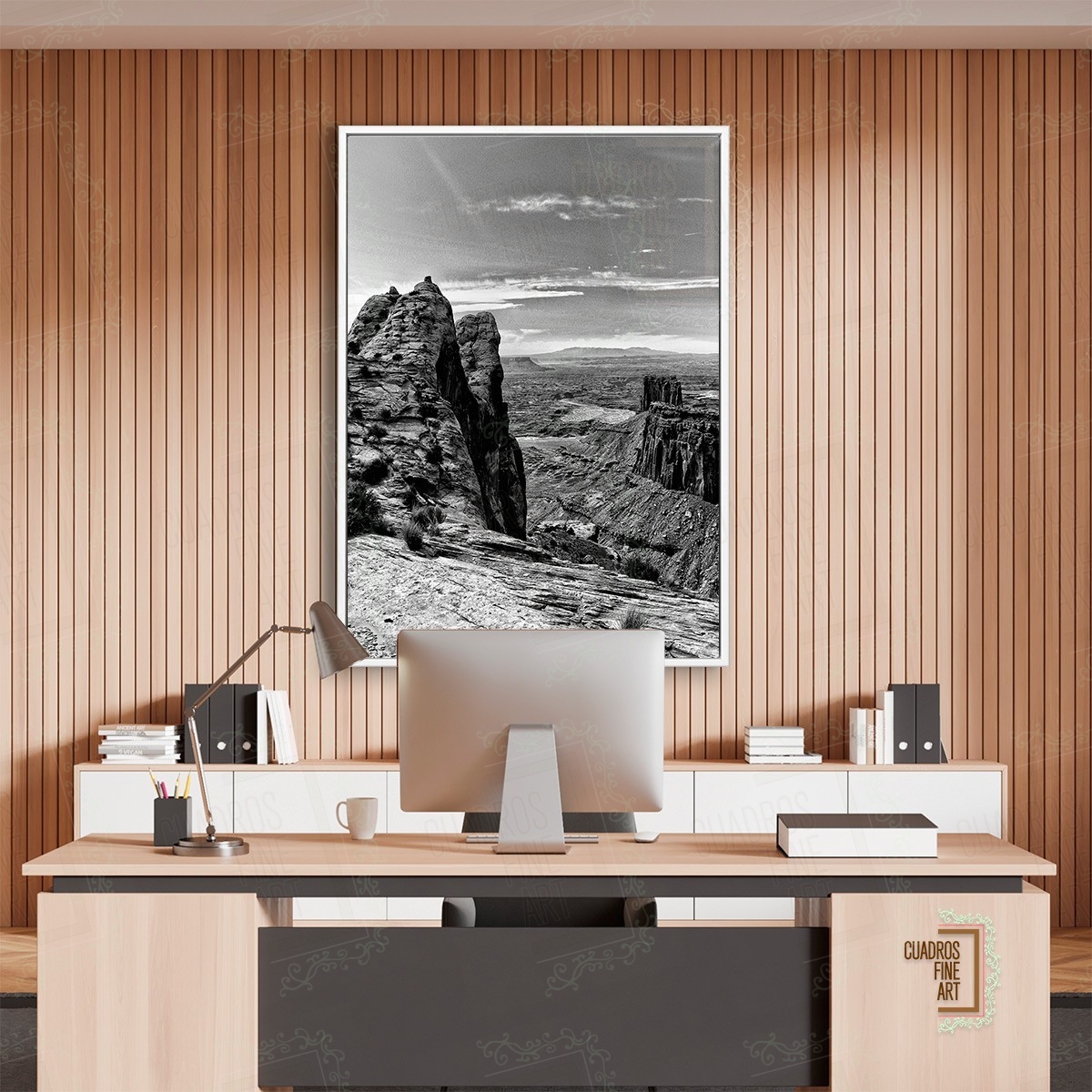 "Tierras del Cañón VII" transforma cualquier espacio. Aporta calma y sofisticación a su sala. Es ideal para un estudio personal. Realza la estética de un recibidor. También puede elevar su oficina. Crea un ambiente contemplativo. Su elegancia atemporal complementa cualquier decoración. Este cuadro en blanco y negro añade carácter. Es una pieza que captura miradas. Invita a la reflexión diaria. Proporciona un toque distintivo. Eleva la conversación de sus visitas. Es más que un elemento decorativo.