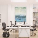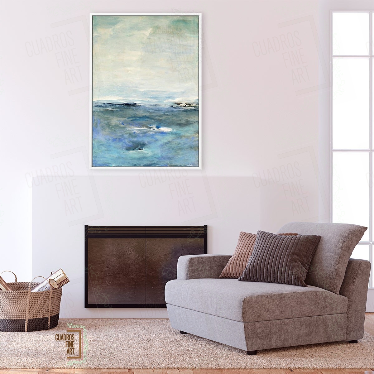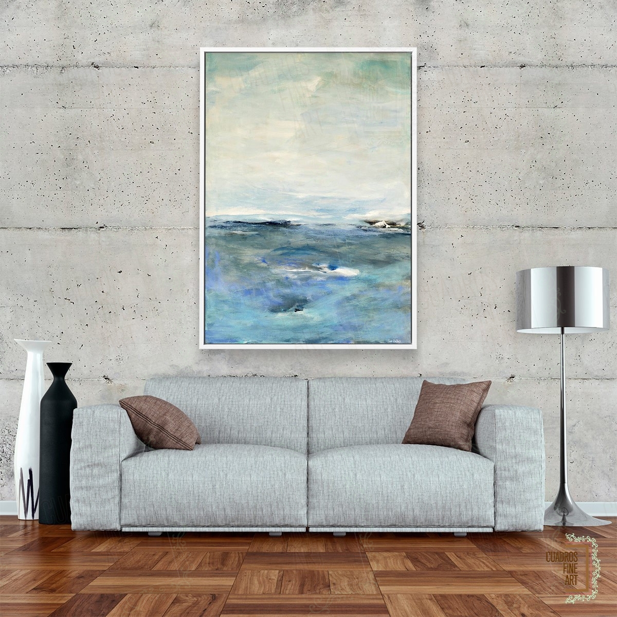 Su sala de estar merece un toque de distinción. Horizonte Azul 1 infunde serenidad en cualquier espacio. Piense en la sala de su apartamento en Bogotá. Imagine su oficina en Medellín. O quizás esa habitación especial en Cali. Este cuadro crea un ambiente de paz profunda. Es un punto focal que invita a la reflexión. Eleva la estética de su interiorismo al instante. Conecta su alma con la vastedad del océano. Es una declaración de estilo sofisticada.