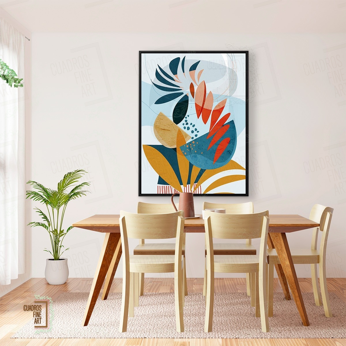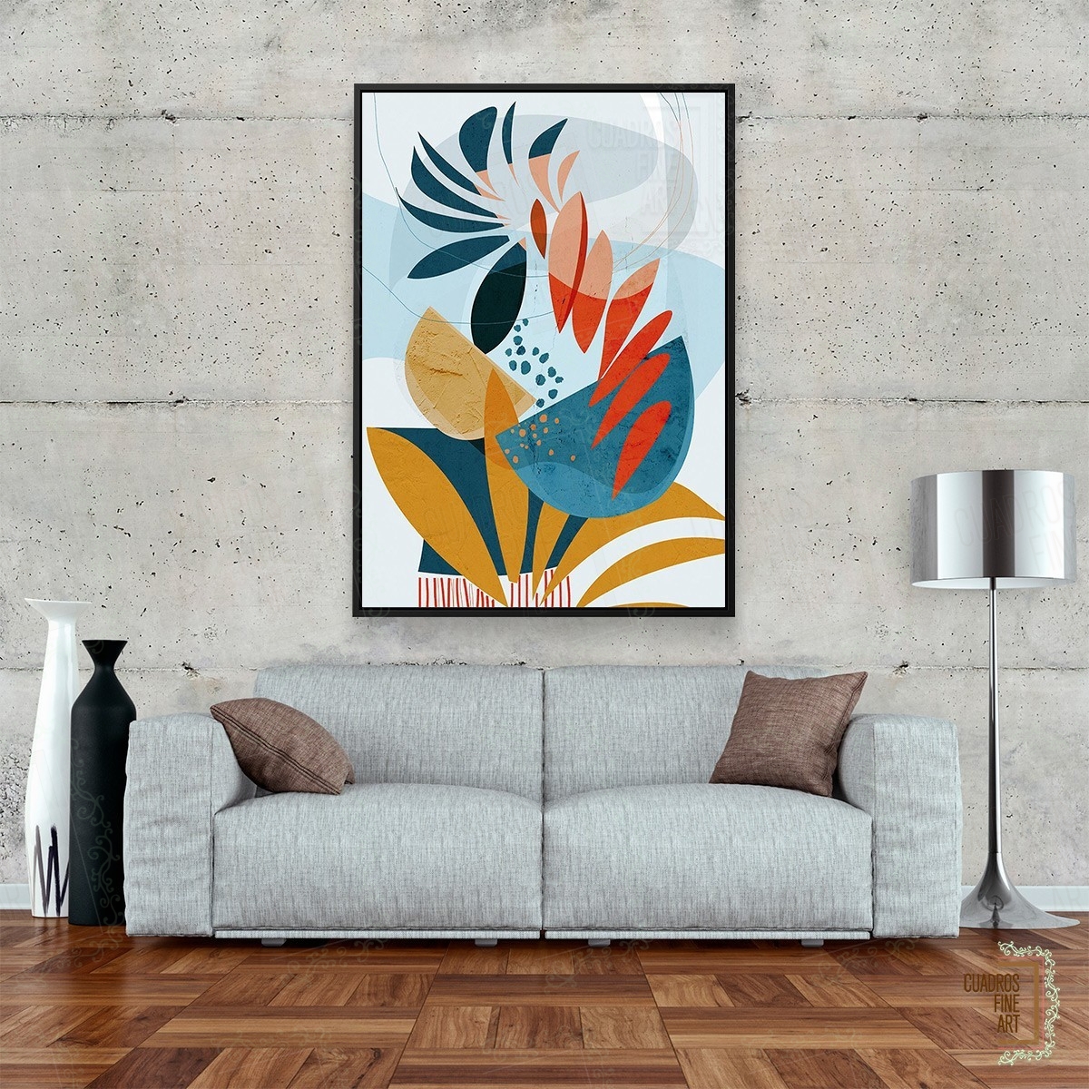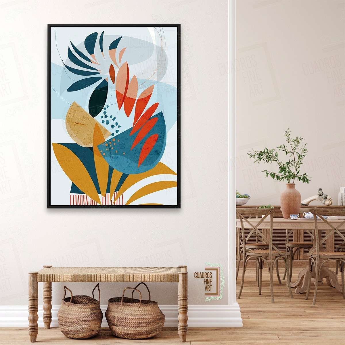 Sumérjase en la belleza exótica de nuestra obra Plantación tropical. Esta pieza de arte floral abstracto lo transporta directamente a la exuberancia de la selva colombiana. Es una vibrante celebración de la naturaleza. Sus formas y colores crean una atmósfera única. Este cuadro abstracto moderno es perfecto para cualquier espacio. Combina la frescura de la naturaleza muerta con un toque tropical. Su diseño cautiva la mirada.