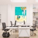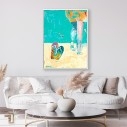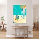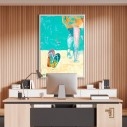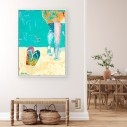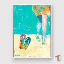 Sumérjase en la frescura de la costa colombiana. Imagine el sol, la arena cálida y la suave brisa marina. Nuestra obra Chanclas en la playa captura perfectamente esa esencia. Es una fascinante pieza de arte contemporáneo figurativo. Destaca la auténtica belleza de lo cotidiano. Refleja un estilo de vida relajado y con mucho carácter. Este cuadro, presentado en formato vertical, es una declaración de moda audaz para cualquier espacio en su hogar.