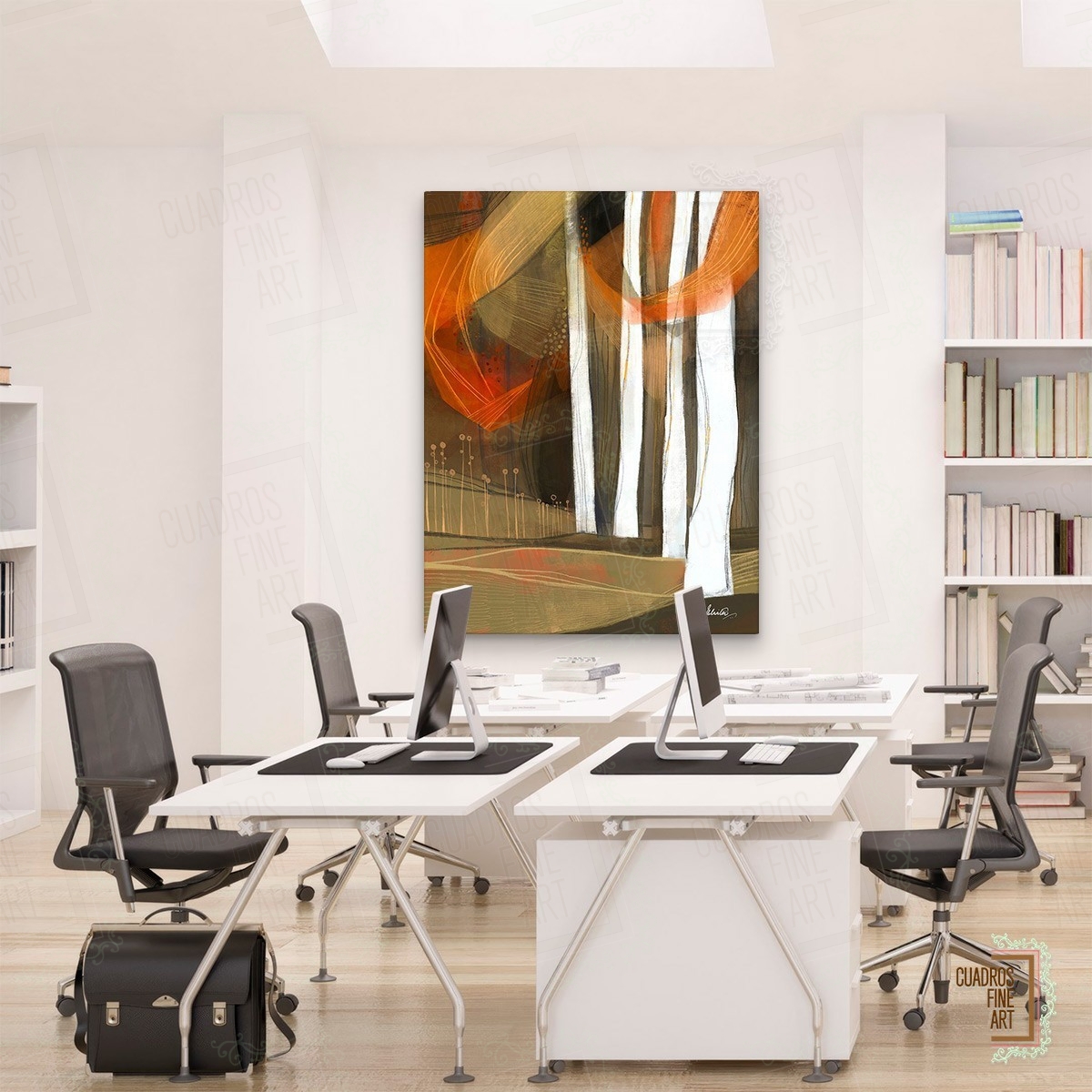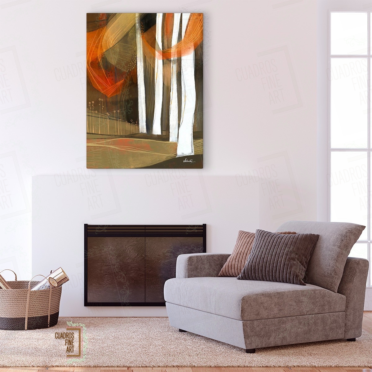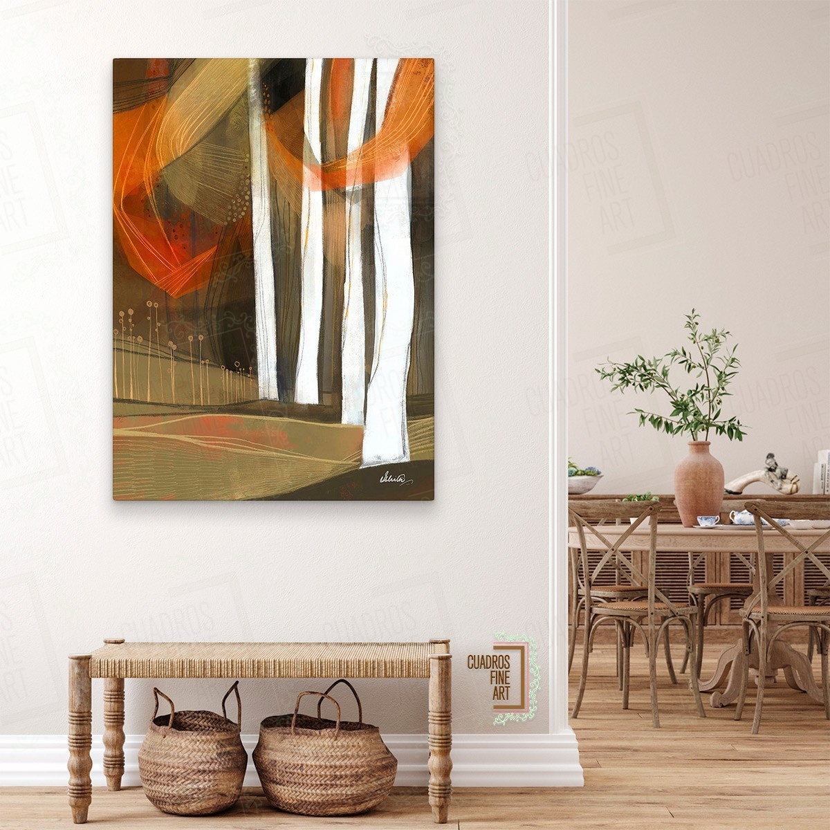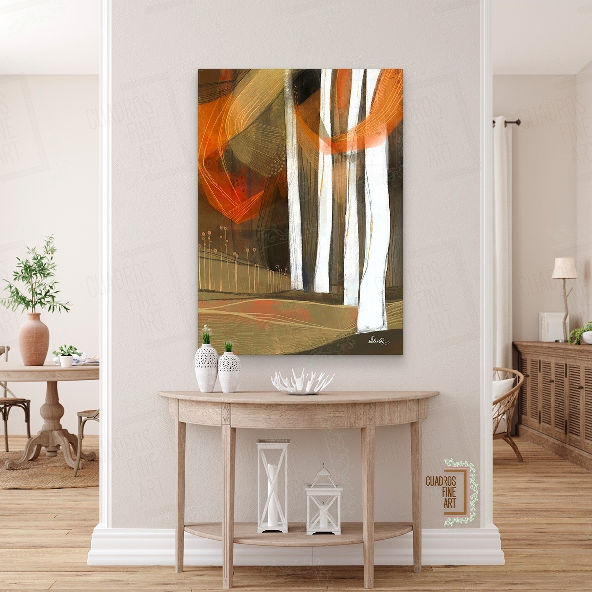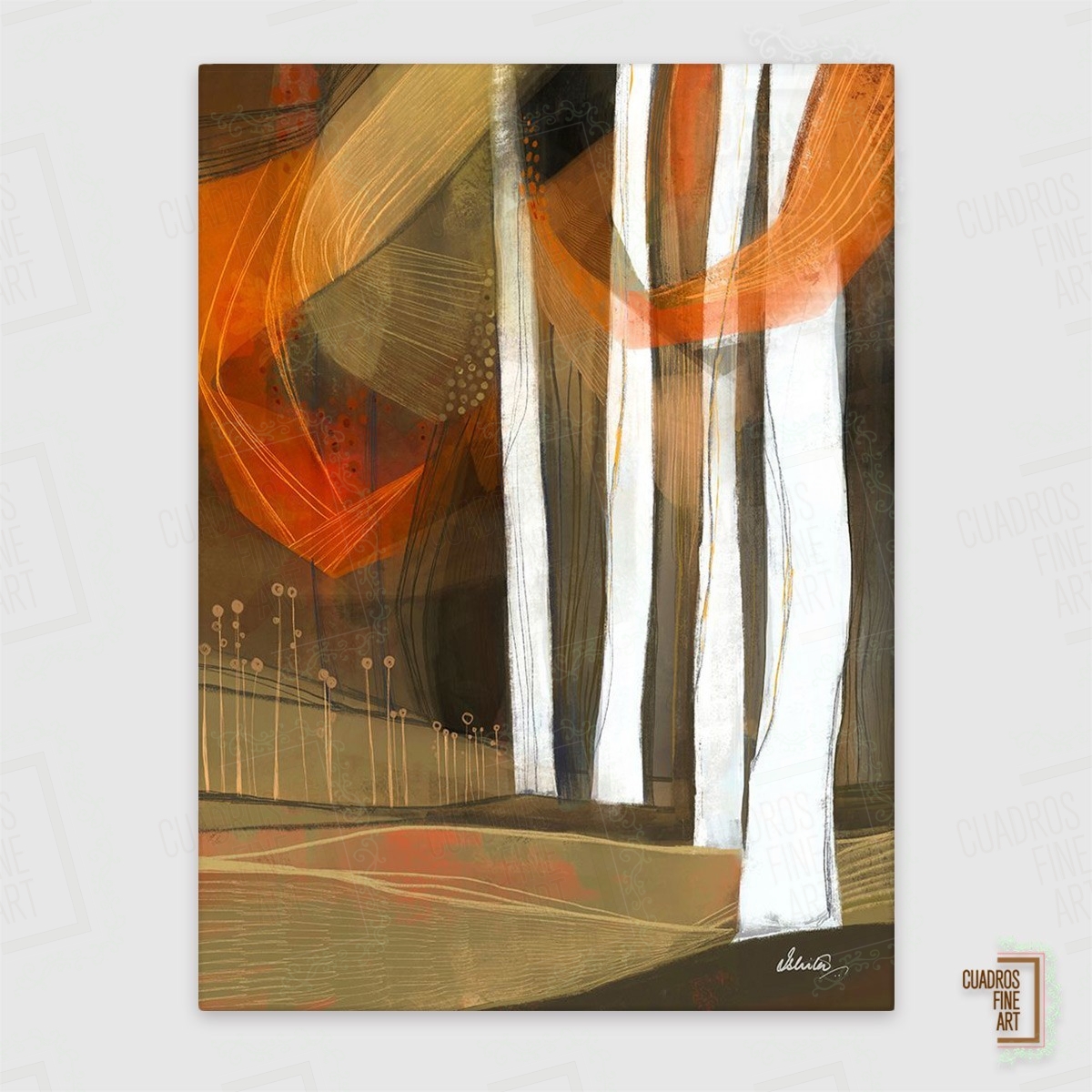 Adéntrese en la profundidad de Bosque de Caída Etérea, una obra que redefine el paisaje abstracto. Este cuadro contemporáneo, diseñado en un versátil formato vertical, captura la esencia de la naturaleza con una visión única. Imagine la serena vibración de un bosque en otoño, transformado por el pincel del artista en una experiencia visual profunda. Esta pieza de arte se destaca, ofreciendo una ventana a un mundo de colores y formas que invitan a la introspección. No es solo un objeto decorativo, es una puerta a la emoción.