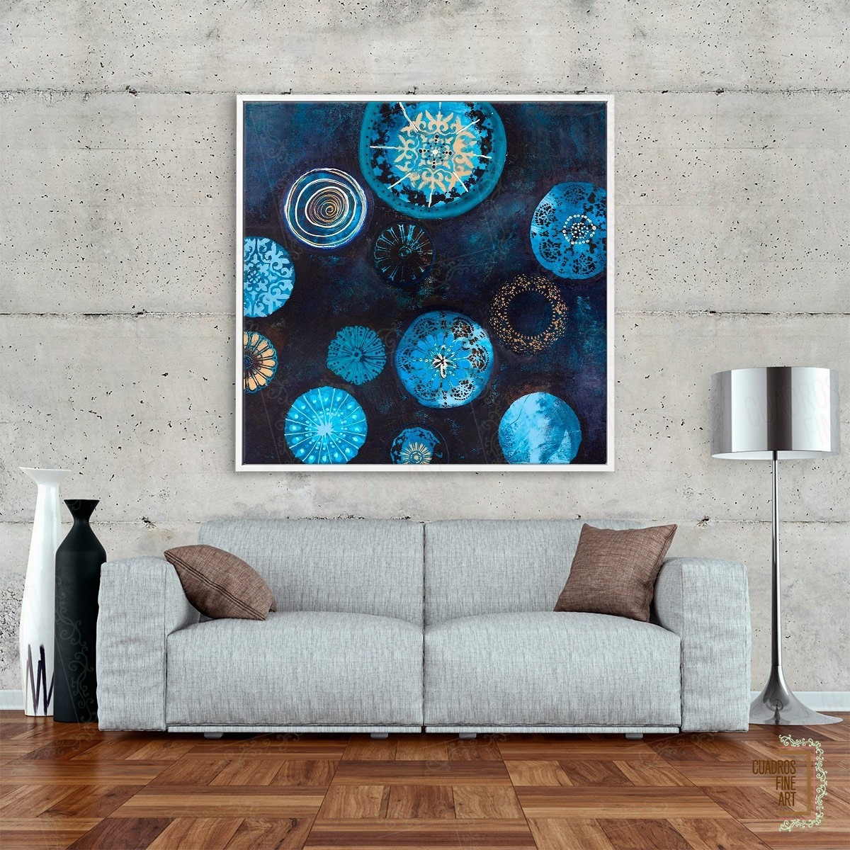 Descubra Índigo, una obra maestra de arte abstracto contemporáneo. Sus intrincados patrones vibran con una energía única. Este cuadro, disponible en formato cuadrado, transforma cualquier ambiente. Refleja la sofisticación y el buen gusto. Sus tonalidades profundas lo invitan a la introspección. Es una pieza que captura la mirada. Ideal para quienes buscan un toque de distinción.