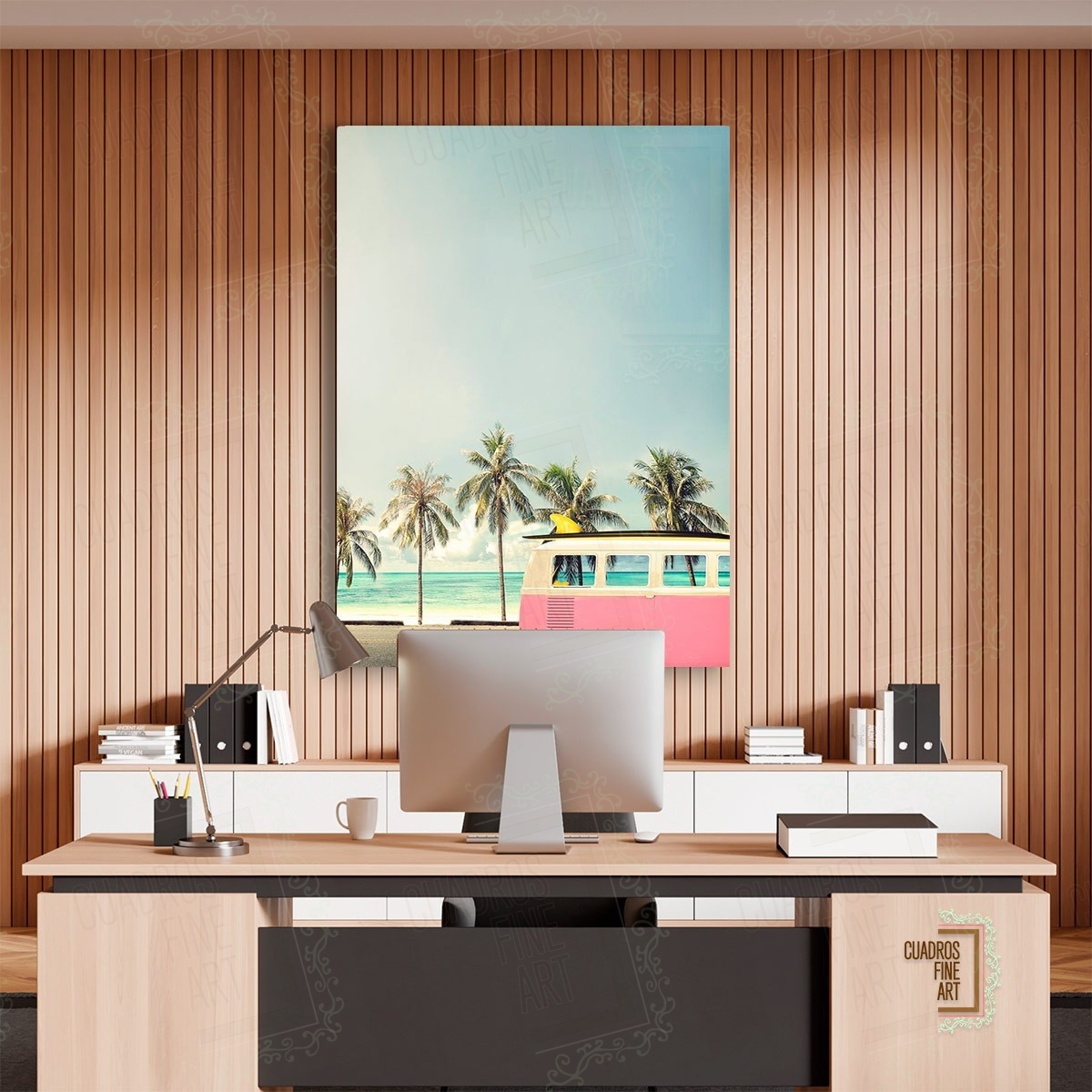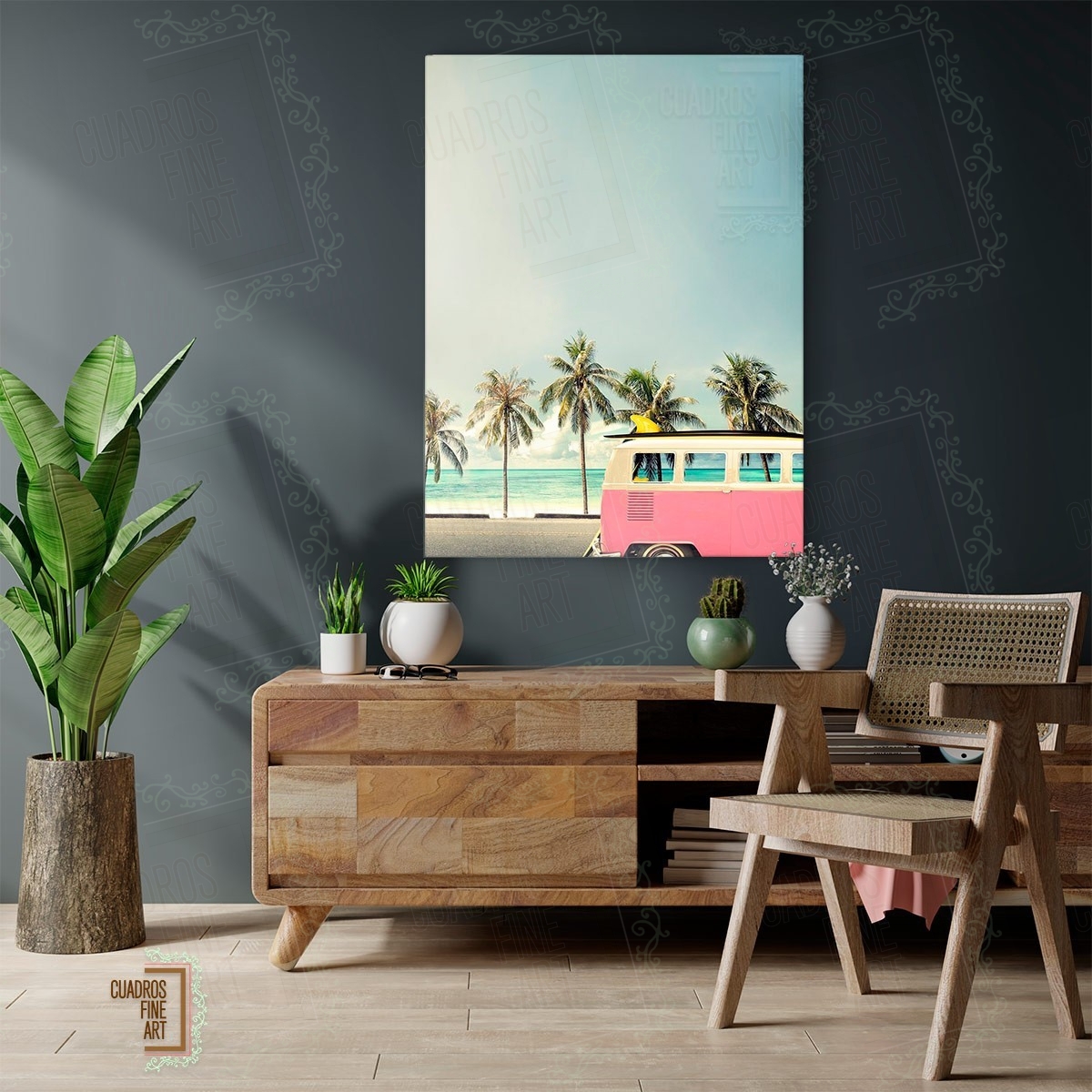 Con 'Van de surf rosa', su sala de estar se transformará. Se convertirá en un oasis de calma y frescura. Imagine su oficina ganando un punto de inspiración diaria. Este cuadro, con su temática tropical, es vibrante y único. Es perfecto para ambientes contemporáneos. Aporta vitalidad a cualquier habitación. Crea un foco visual que invita a la relajación. Es ideal para quienes buscan conectar con la naturaleza. Convierte un simple muro en una ventana al paraíso. Su hogar en Colombia merece esta belleza.